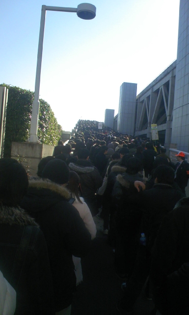 国際展示場駅に着いてからがまた戦場。とりあえず会議棟(あの4本足の建物)の見える位置には並べた。